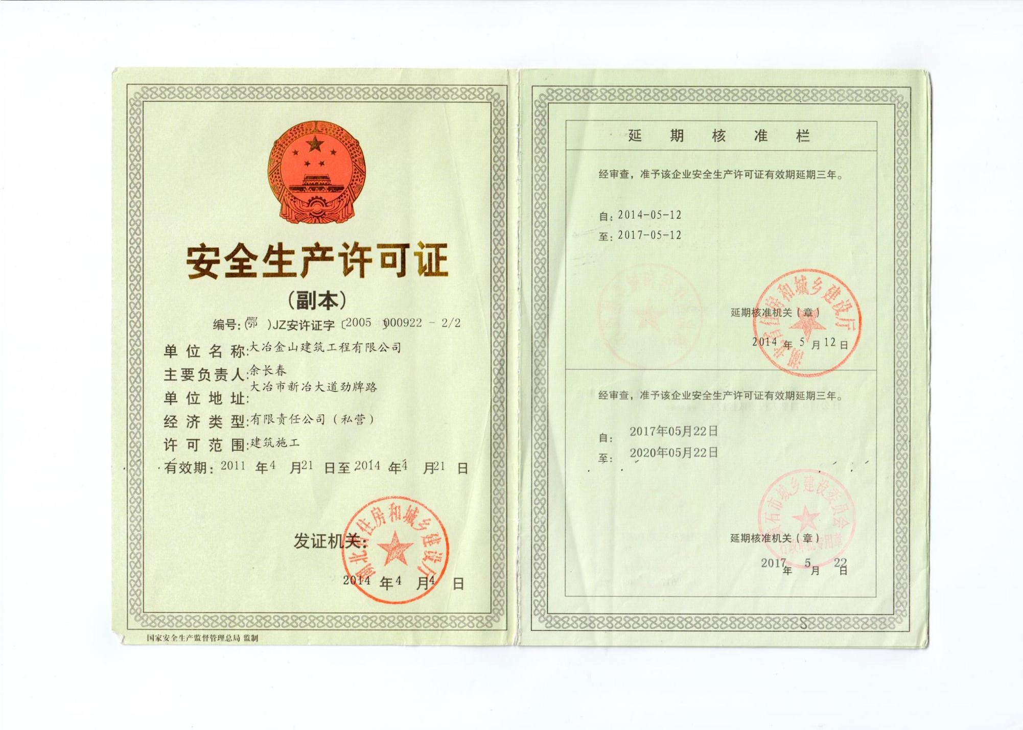 公司統(tǒng)一社會(huì)信用代碼:914202811787125664,建筑企業(yè)資質(zhì)證書編號(hào):D242002488,D342097683,安全生產(chǎn)許可證號(hào):{2005}000922-2/2。