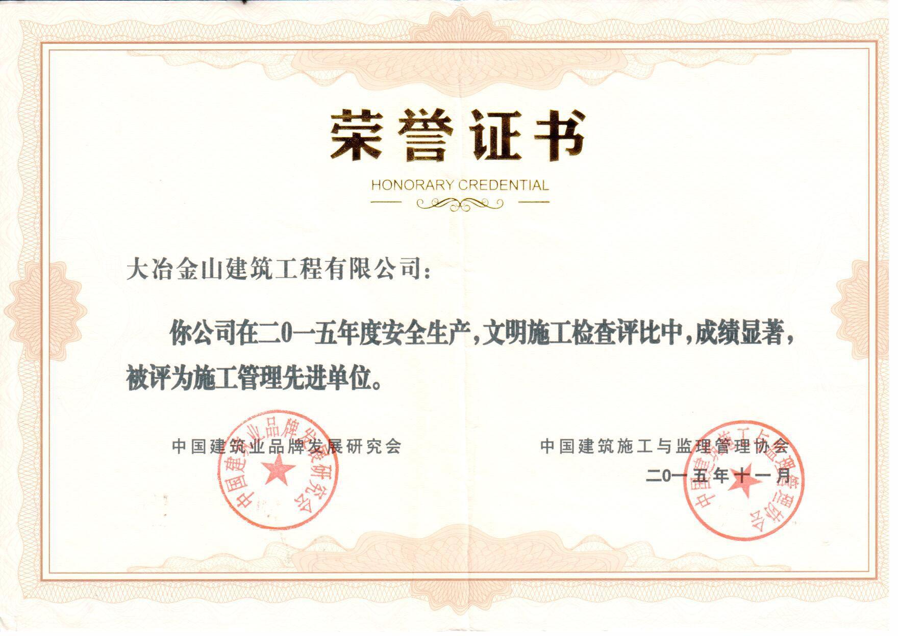 在建筑市場激烈競爭中,公司以雄厚的資金,精湛的技術(shù),堅(jiān)持以“誠信立業(yè),經(jīng)營富業(yè),人才興業(yè),創(chuàng)新強(qiáng)業(yè)”的發(fā)展理念,以“質(zhì)量第一,鑄精品工程;用戶至上,樹金山品牌”的宗旨,本著“做一處工程,交一方朋友;建一個(gè)項(xiàng)目,樹一座豐碑”的目標(biāo),發(fā)揚(yáng)“干部有朝氣,職工有志氣,隊(duì)伍有士氣,公司有名氣”的團(tuán)隊(duì)精神,從而實(shí)現(xiàn)了公司“質(zhì)量一流,信譽(yù)一流,效益一流”的良性循環(huán)。