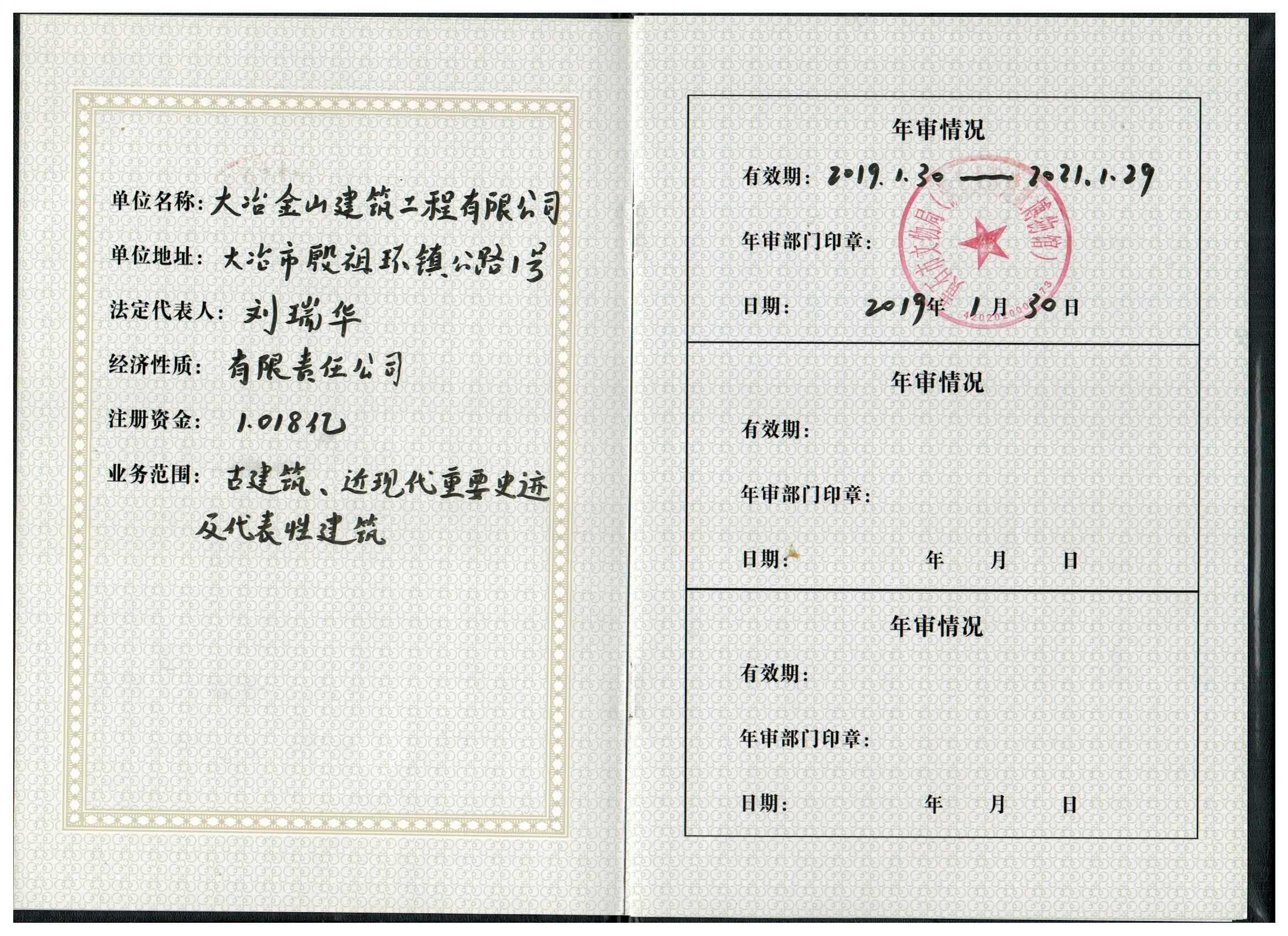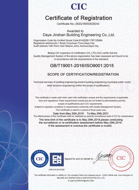 大冶金山建筑工程有限公司始建于1984年,屬鎮(zhèn)辦集體企業(yè)。1997年改制為大冶山建筑工程有限責(zé)任公司,屬股份制企業(yè)。2013年更名為大冶金山建筑工程有限公司,2018年3月公司資源重組,公司注冊(cè)資金達(dá)到10180.00萬元,公司法定代表人為劉瑞華。公司具有古建筑工程專業(yè)承包壹級(jí)、建筑工程施工總承包貳級(jí)、市政工程總承包叁級(jí)、鋼結(jié)構(gòu)工程專業(yè)承包叁級(jí)資質(zhì)。